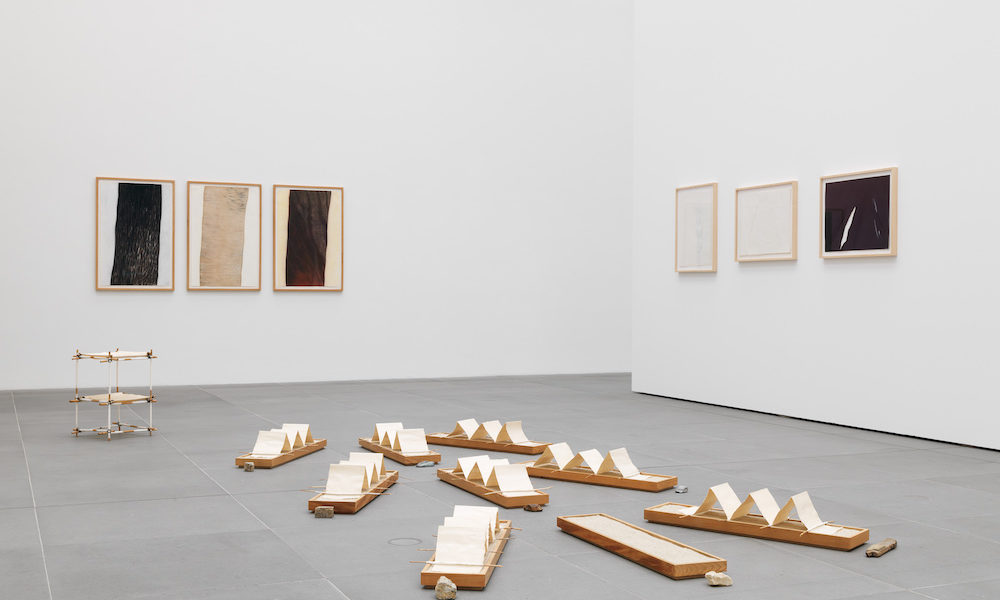 2000 yılında kaybettiğimiz sanatçı Bilge Friedlaender’ın 2016’da Işın Önol ve Mira Friedlaender’ın eş küratörlüğünde Arter’de düzenlenen “sözcükler, sayılar, çizgiler” adlı sergisinden tanıdığımız yapıtlarının önemli bir bölümü Vehbi Koç Vakfı Çağdaş Sanat Koleksiyonu’na kazandırılmıştı. Sanatçının 70’li ve 80’li yıllarda el yapımı kâğıt üzerine suluboya, pastel, mürekkep, tel, iplik gibi malzemelerle ürettiği, insan ve doğa arasındaki ilişkiyi, ufuk çizgisi ve yerçekimi gibi kavramları son derece minimal ve şiirsel bir yaklaşımla ele aldığı bu yapıtlar, Neues Museum’daki serginin giriş bölümünde tekrar bir araya geliyorlar.